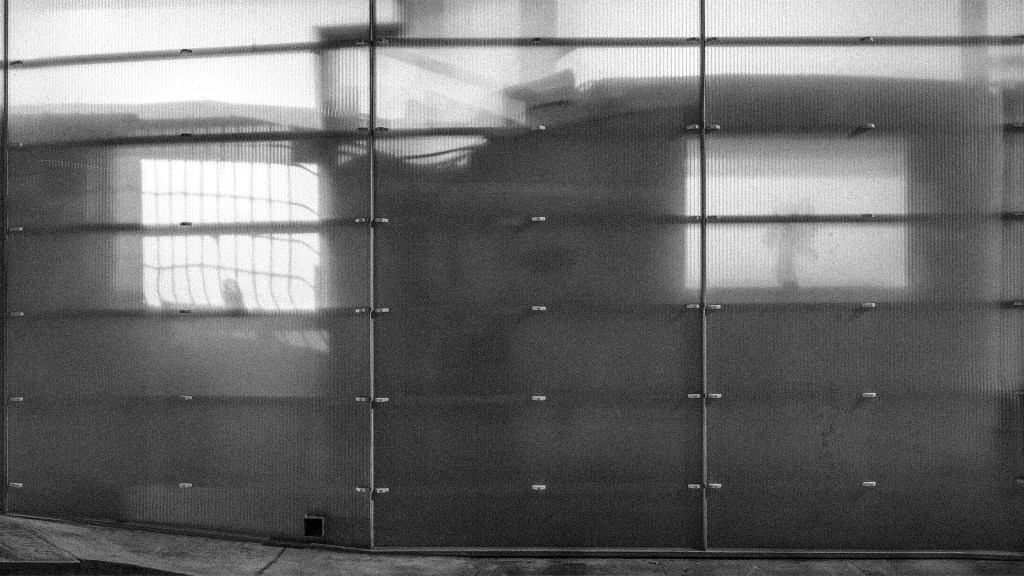 The main façade of the building was constructed with plexiglass. The remains of old walls, however, were preserved inside and after dusk, when the interior lights are turned on, their silhouette can be seen from the outside. This effect simultaneously projects a picture of the past on the present facade of the building.